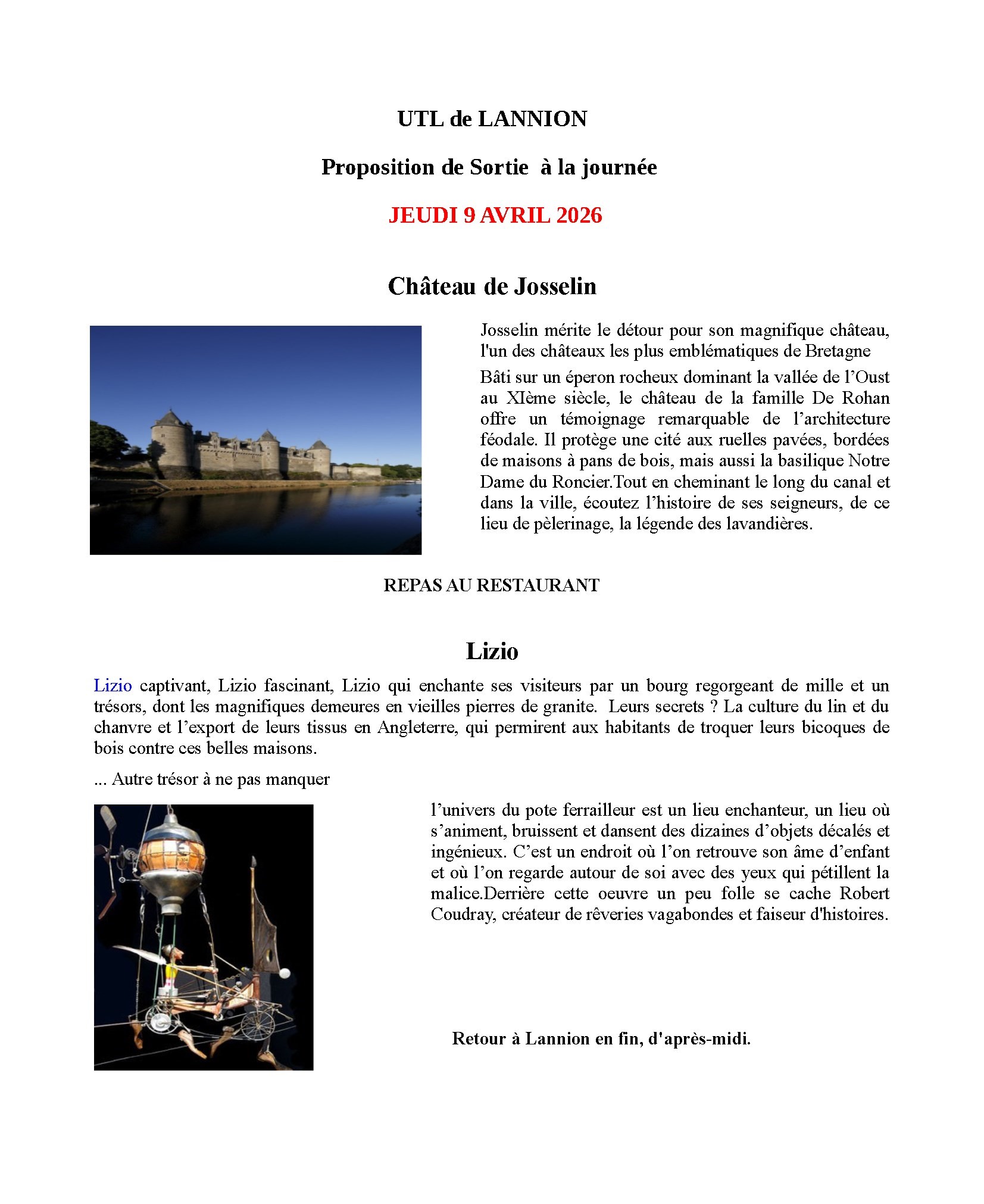 - Josselin mérite un détour pour son magnifique château, et le bourg de Lizio voisin pour une visite guidée dans le domaine de son poète ferailleur.